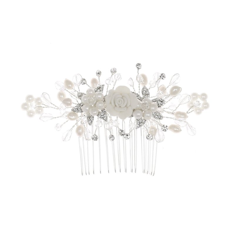 SAMKY Handmade Crystal Freshwater Pearl Flower Wedding Tiara Hair Comb T1084