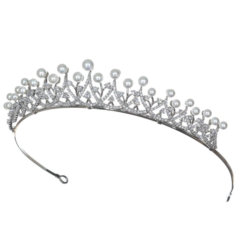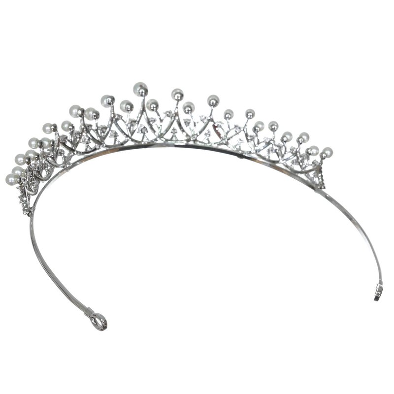 Elegant Princess CZ Crystal Platinum Plated Pearl Bridal Tiara Crown T1265