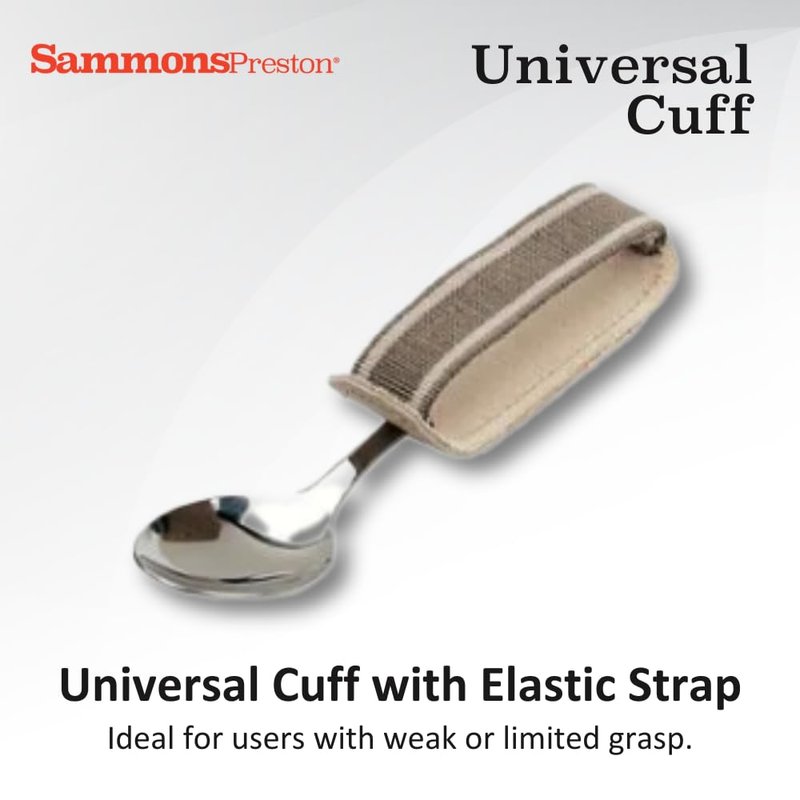 - Holds various utensils and eating cutlery such as spoons, forks, and knives to make it easier for individuals with weak or limited grasp to eat