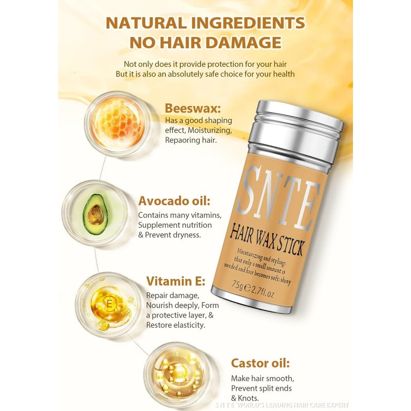 - 【Natural Botanical Ingredients Allow Hair to Breathe】Our hair wax stick contains 35% extra natural botanicals such as beeswax, castor oil and shea butter to deeply moisturize hair, smooth frizz and dryness, smoothen hair and fix hair style. The avocado botanicals in our hair finishing stick can brighten your hair, and does not contain any harmful substances and preservatives. Suitable for all hair types, the main focus is on clear and non-greasy, let hair breathe!