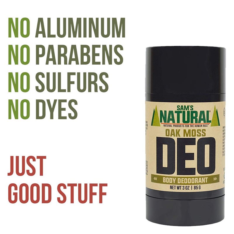 HIGHLY EFFECTIVE NATURAL INGREDIENTS: Sam’s Natural Oak Moss Deodorant is aluminum free, paraben free, toxin free, chemical free, and propylene-glycol free. Our formulation contains highly effective natural ingredients including baking soda to neutralize odor causing bacteria, coconut oil to fight bacterial and fungal growth while moisturizing the skin, arrowroot powder to absorb wetness and add thickness, and candelilla wax to hold it all together for a sustainable, hardworking stick. Our oak moss natural deodorant is scented with a fragrance oil.
