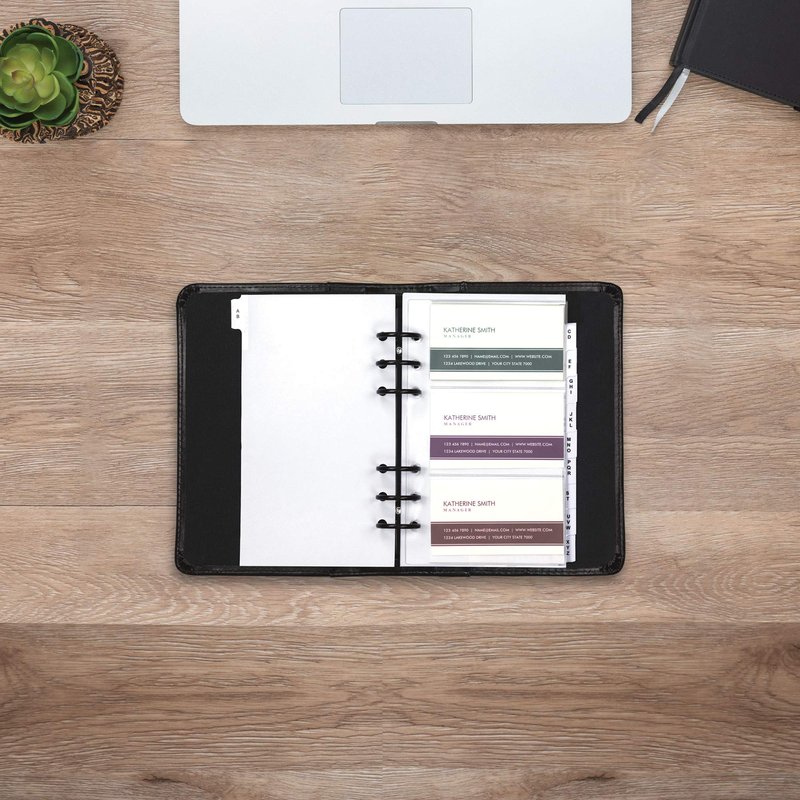 - A-Z indexes and pages to hold 120 business cards