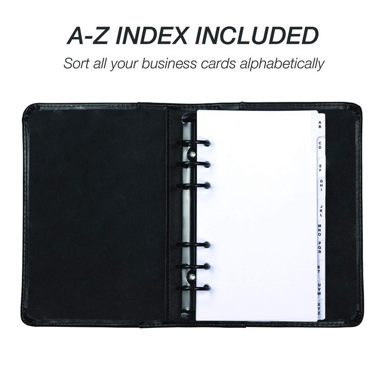 Samsill 81270 Regal Leather Business Card Book, 6 Ring Binder Holds 120 Business Cards and A-Z Indexes, Black