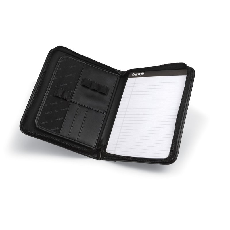 Samsill Professional Padfolio, Faux Leather Junior Portfolio with Zipper, 10.1 Inch Tablet Sleeve, with 7 x 10 Inch Notepad, Black