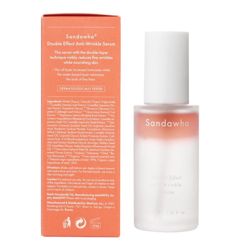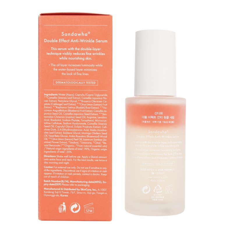 SanDaWha SKINCURE Double Effect Anti-Wrinkle Serum with Camellia Extract - Vegan Korean Serum, Nourishes & Reduce Wrinkles, Daily Line Smoothing Treatment for Fine Lines, 1.76 fl.oz.