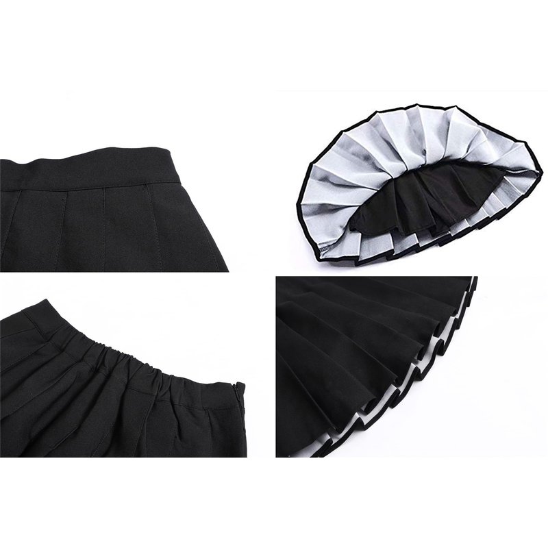 SANGTREE Toddler Little & Big Girls' Women Solid Plain Pleated School Uniform Short A-Line Skirt, Black, 13-14 Years/Height 66.9" = Tag 170