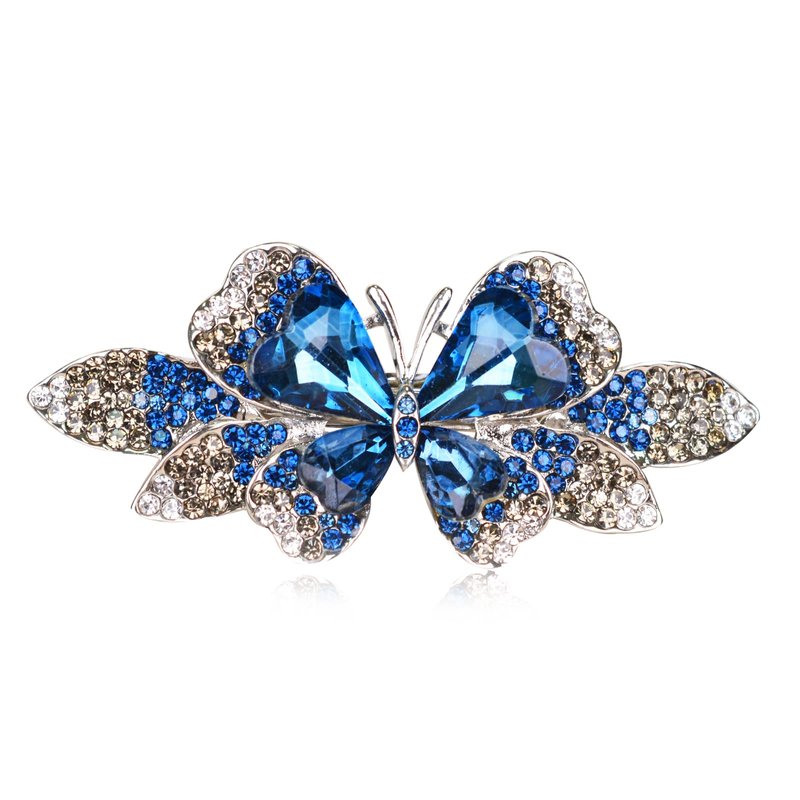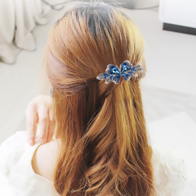 Sankuwen Crystal Rhinestones Hair Barrette French Hair for Women Small Hairpin for Mom Butterfly Hair Clips (Deep Lake Blue)