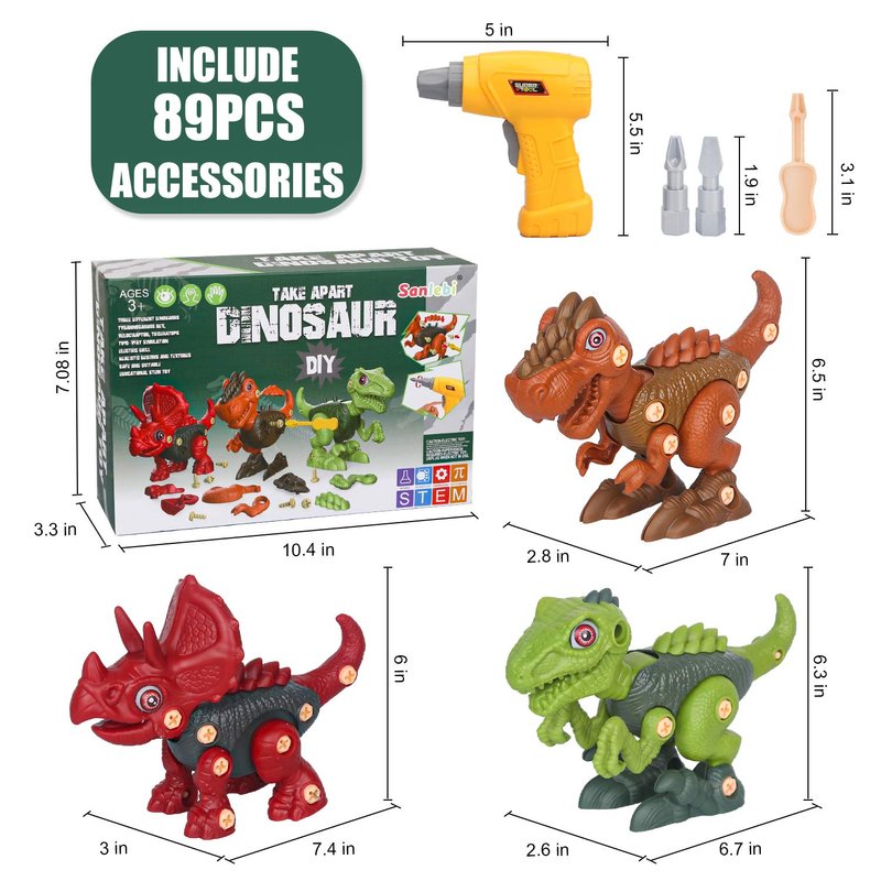 Sanlebi Toy for 4 5 6 7 Year Old Boys Take Apart Dinosaur Toys for Kids Building Toy Set with Electric Drill Construction Engineering Play Kit STEM Learning for Boys Girls Age 3 4 5 Year Old