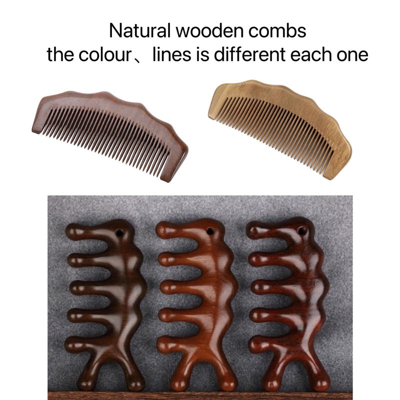 - ● Twofold Care: Two kinds of hair wood comb that have different function.The wave wooden comb and head maasager comb, They are easy to brush out dead skin cells、tangles and breed stronger roots and follicles by massage.
