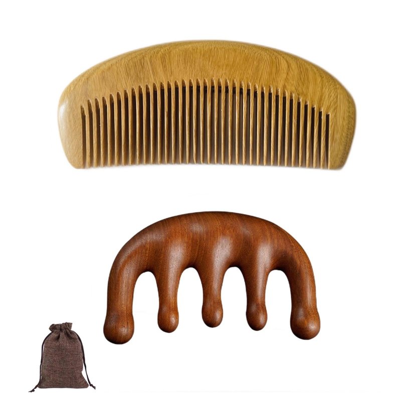 - ●Natural Material: High-quality wood, the hair comb is made of natural green sandalwood which has unique natural wood flavor. The massage comb made of natural golden sandalwood. They are environmentally friendly, smooth and durable, not easy to break, and can be used for a long time.