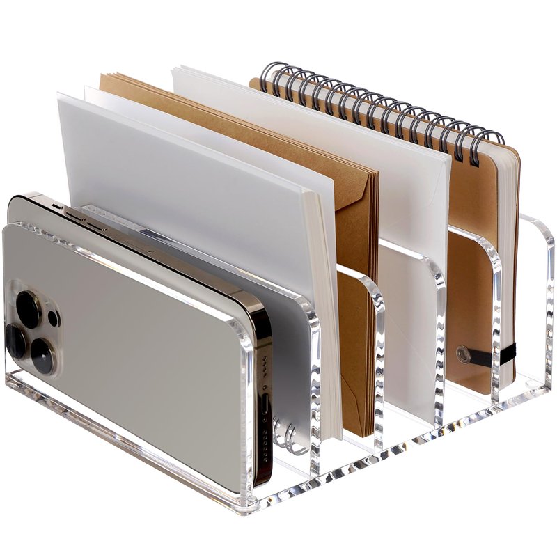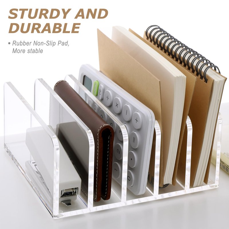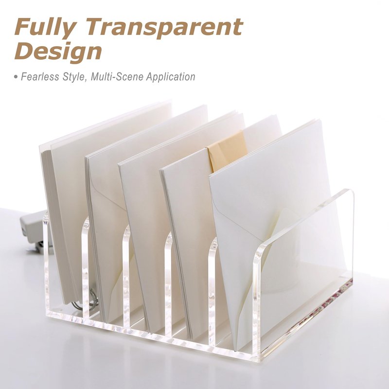 - Sturdy And Compact Desk Envelope Organizer:This desk organizer is a perfect addition to your desktop. The file sorter rack also features adhesive pads on the bottom to securely fasten it to your desktop.The clear acrylic design is simple and beautiful, making it very practical in homes, offices, schools and elsewhere.