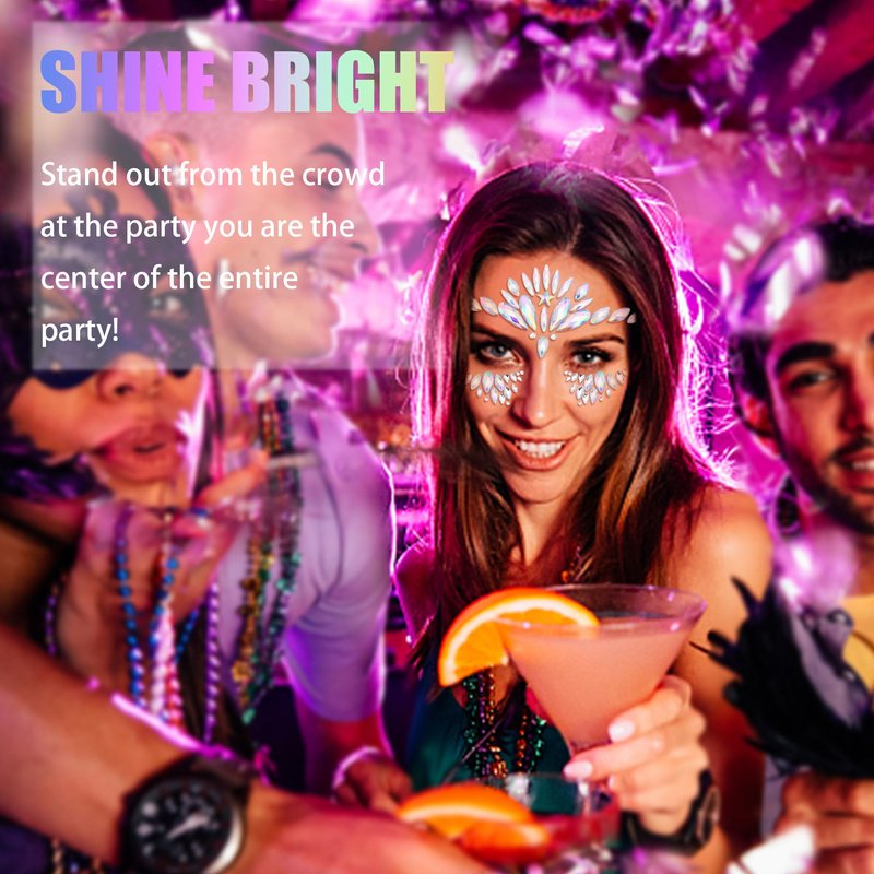 - 【SUITABLE OCCASION】These sparkling face jewels stick on are perfect for occasions such as music festivals, carnivals, Halloween, costumes, weddings, or pool parties, making you the spotlight of the entire party.