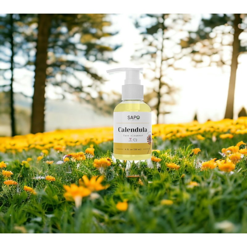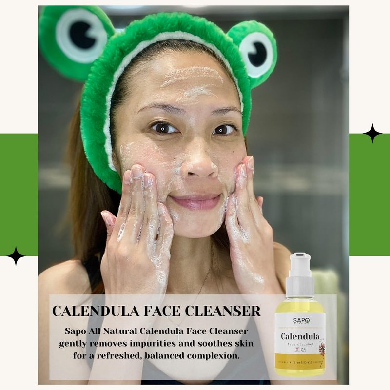 Sapo All Natural Calendula Face Cleanser - A Calming and Soothing Facial Wash that Gently Cleanses Acne, Oily and Sensitive Skin - Made with Hyaluronic Acid - 4 Fl Oz