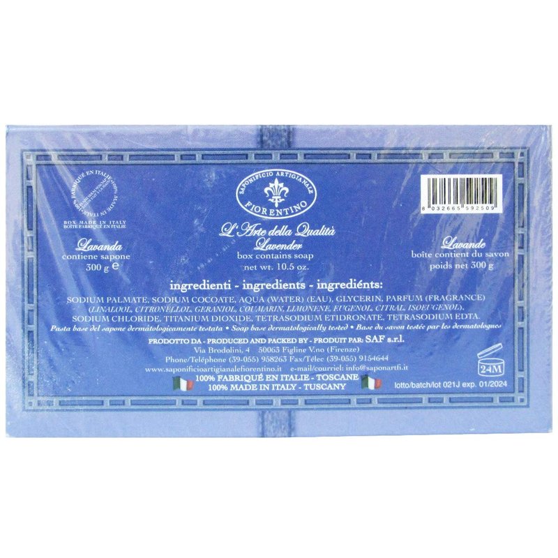 Saponificio Artigianale Fiorentino "Lavender" - Single Soap Bar 10.5 Ounce. Made in Italy - Tuscany