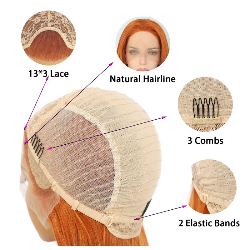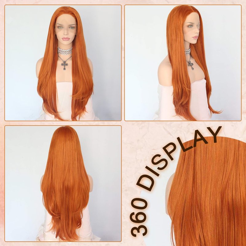 - Orange color layered heat resistant synthetic lace front ginger wig for Party ,Daily Makeup,Cosplay,Darg-queen,Wedding ,Present.