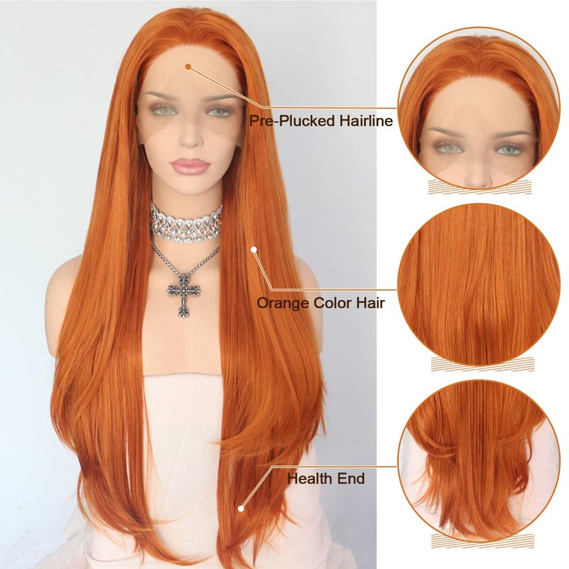 Sapphirewigs Orange Wig Long Natural Straight Wave Wigs Synthetic Lace Front Hair Replacement Wigs Beauty Blogger Daily Makeup Cosplay Ginger Wig for Women Halloween Costumes Wigs