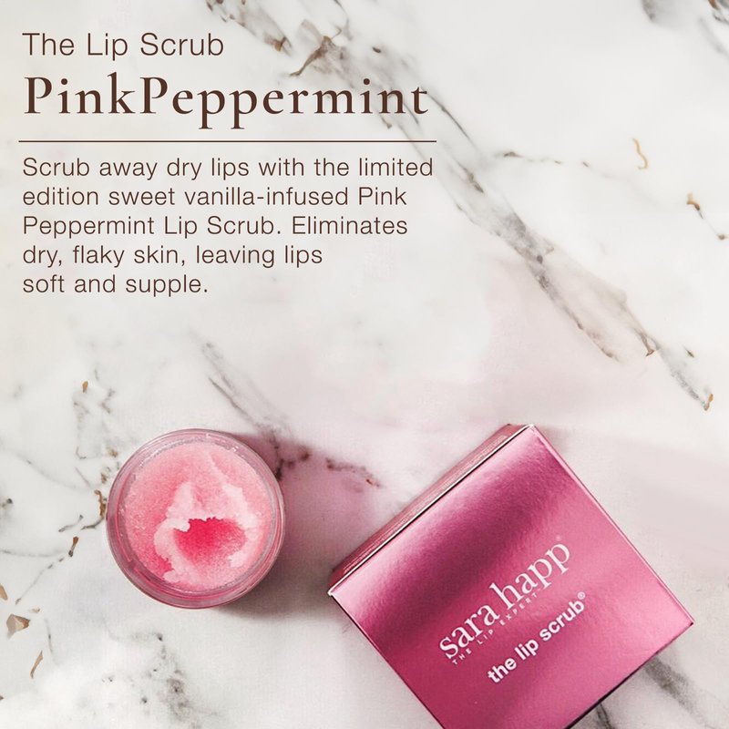 - PINK SWEET PEPERMINT - Scrap away dry lips with the limited-edition sweet vanilla infused pink peppermint lip scrub. Eliminates dry, flaky skin, leaving lips soft and supple.
