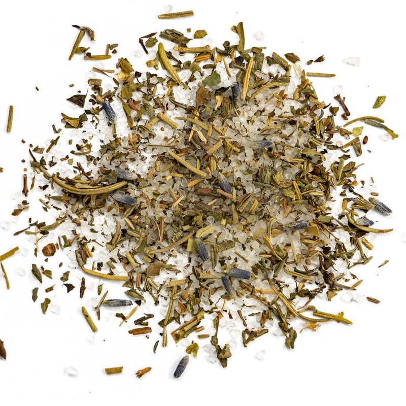Crunchy, medium sea salt blended with lush herbs de Provence and lavender oil.