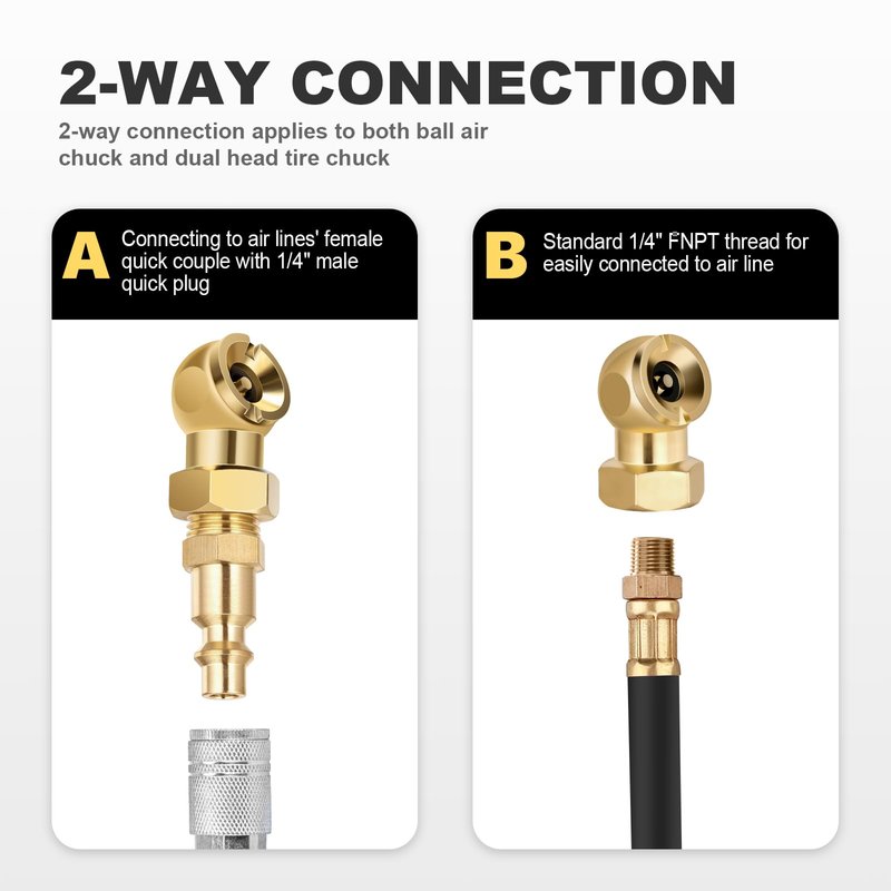 - š”ćClosed Ball Tire Chuckćļ¼SARDVISA heavy duty 2 packs 1/4" FNPT air chucks with 2 pcs 1/4" MNPT quick plug.300 psi maximum air pressure. Suitable for commercial and industrial air filling applications.