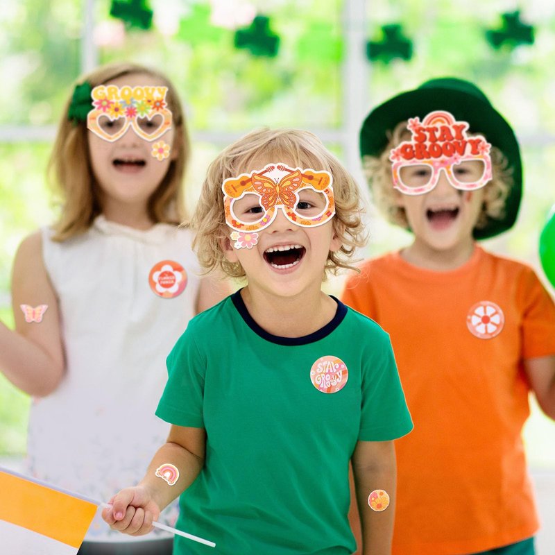 - Groovy Hippie Party Favors Set: the package includes 122 pieces retro hippie party favors which is 12 hippie silicone bracelets, 12 groovy hippie key chains, 12 hippie badges, 12 groovy hippie glasses, 12 hippie stampers, 12 organza bags and 50 groovy hippie stickers; Both adults, boys and girls will like them