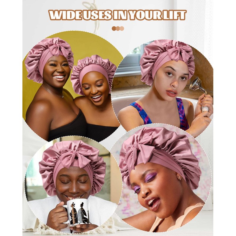 - Satin Bonnet for Sleeping Versatile:Satin hair bonnet is not only suitable for sleeping, you can also use it to wash your face, bathe, cook, do SPA, tie your hair or clean your face while doing makeup, even do housework, do yoga and so on