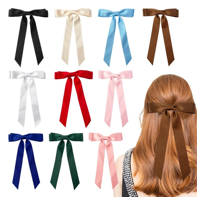 Satin Hair Bows for Women - 10pcs Silky Women Hair Bow Clips Ponytail Holders Hair Ribbon for Women Girls