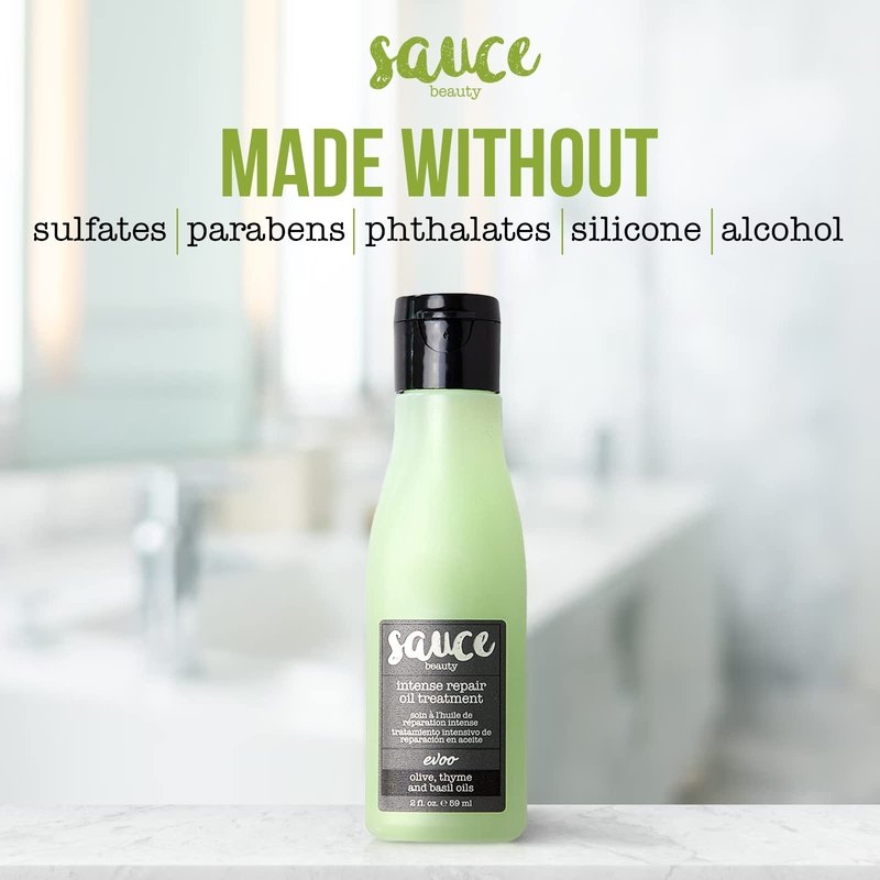 SAUCE BEAUTY Intense Repair Olive Oil Treatment - Hair Oil for Curly Hair w/Olive, Thyme & Basil Oils - 2 Fl Oz Hair Oil for Damaged Hair & Split Ends (EVOO)