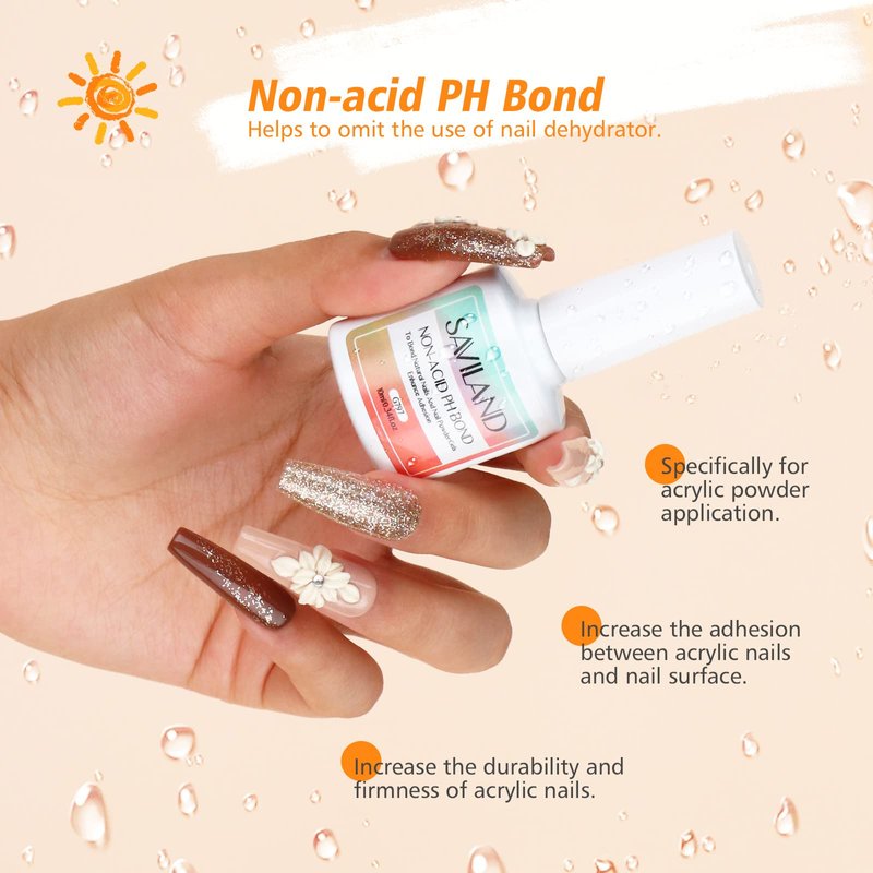 - 🍊Sturdy & Long-Lasting: Saviland acrylic nail kit is designed for more durable manicures, so a non-acid PH bond is also provided for you in this acrylic nail kit. As the toughest manicure, acrylic nail primer can play the effect of one plus one more than two, so that the acrylic nails can last for more than 28 days.