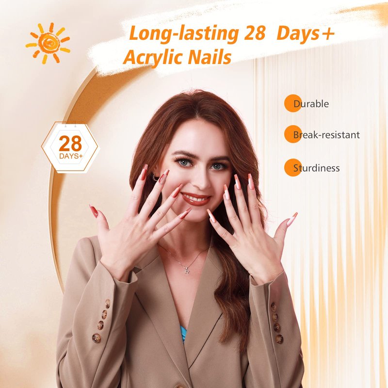 - 🍊Quick and Easy To Do Acrylic Nails: Simply use the acrylic powder and monomer acrylic nail liquid included in acrylic nail kit to build a bead at 1:1.5 ratio to create acrylic nails within 5-8 minutes. Follow simple steps to create acrylic nails extension, nail sculpture with 3D design, French manicure, acrylic nail tips, or other nail art designs.