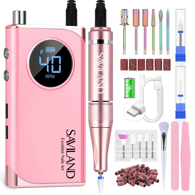 SAVILAND Electric Nail Drill Professional: 40000RPM Nail Filer Electric Manicure Pedicure13 Nail Drill Bits for Acrylic Nails False Nails Gel Nails Dip Nail Artificial Nails Home Salon