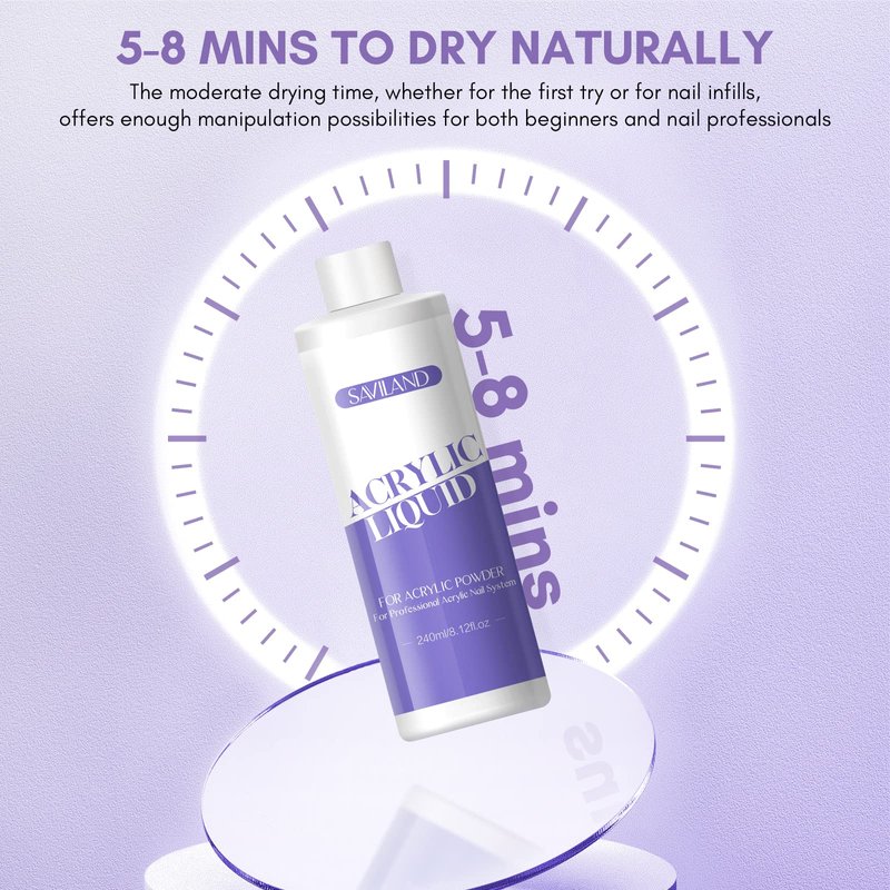 - 💧Large Capacity for Multiple Applicaion: Saviland acrylic liquid features 8oz/240ml, big capacity for beginners DIY practice more times or regular salon use. Acrylic nail liquid dries within 5-8 mins naturally, slow drying for shaping nails, to create acrylic nail extension, nail sculpture with 3D design, French nail tips, or only being a clear overlay! A ventilated place is recommended to reduce the smell.