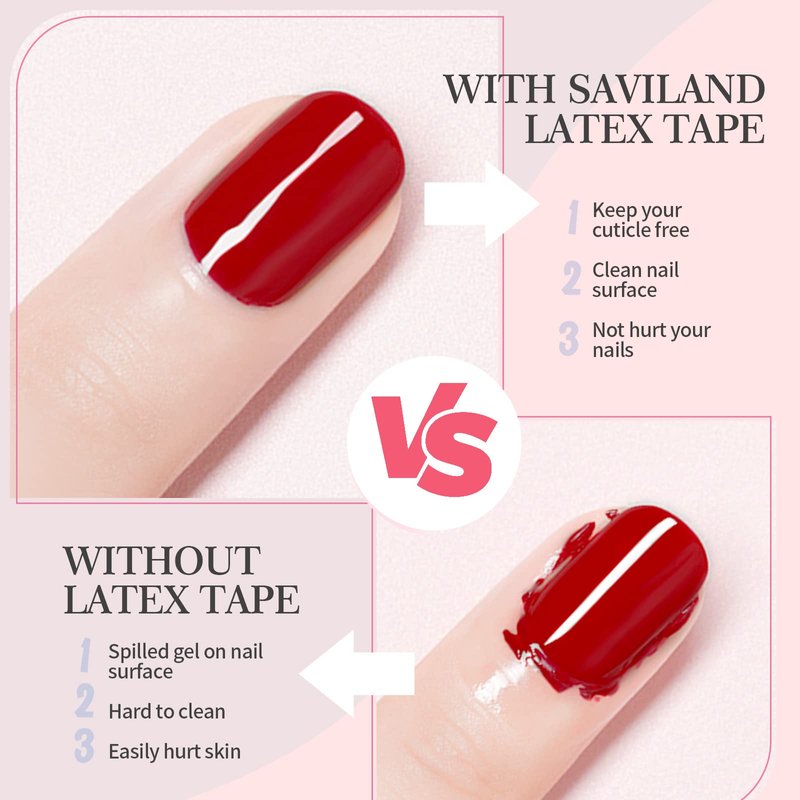 - UPGRADED ANTIFREEZING LATEX TAPE FOR NAIL: Saviland peel off nail polish barrier adopts upgraded formula that can withstand colder temperature. It’s a quick drying liquid nail tape or nail latex peel off for gel polish that protects the cuticle from the mess of nail art applications such as marbling, gradients, nail polishes, French manicures, stamping and many other types of manicures. The nail polish peel off barrier contains 2 pcs 15 ml/0.5 oz latex tape for nails and 1pcs nail art tweezers