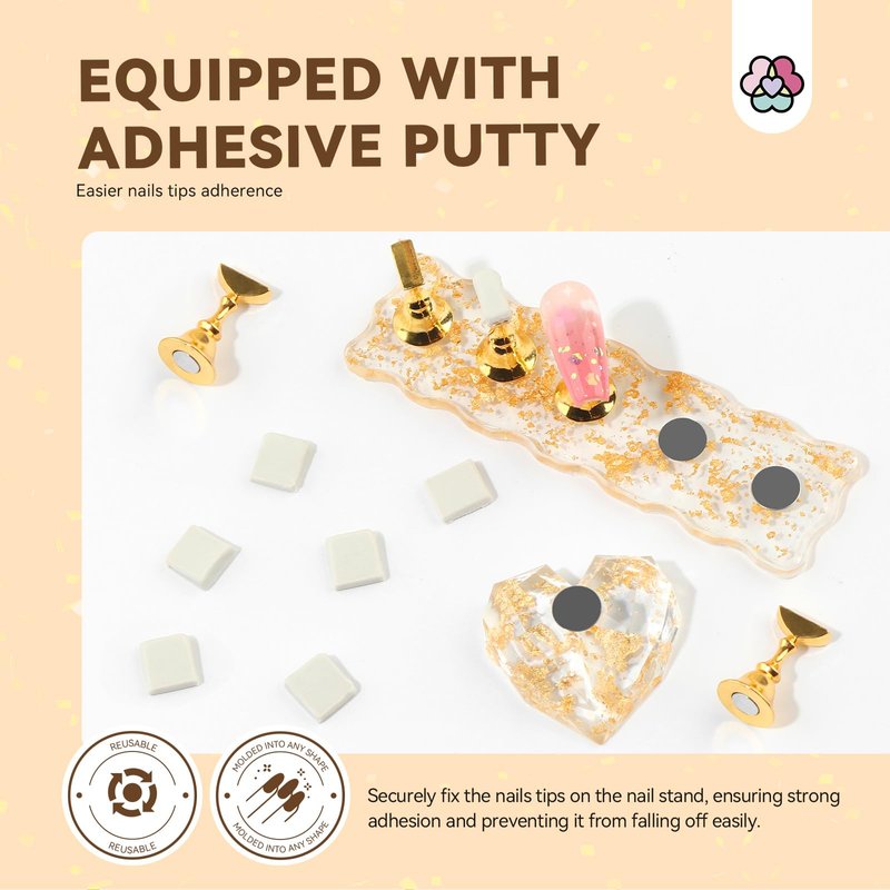 1. Achieve precise and clean nail application with the stable base provided. 2. Versatile nail stand designed to fit various sizes and shapes of press-on nails, ensuring flawless results comparable to salon-quality finishes. 3. Elevate your nail art accessories with upscale sophistication. 4. Enjoy the elegant touch of the crystal-clear appearance and luxurious texture resembling gemstones. 5. Explore multiple functions such as displaying nail art designs or acting as nail display with the versatile design. 6. Experience strong magnetic force for stability without detachment during creative endeavors.