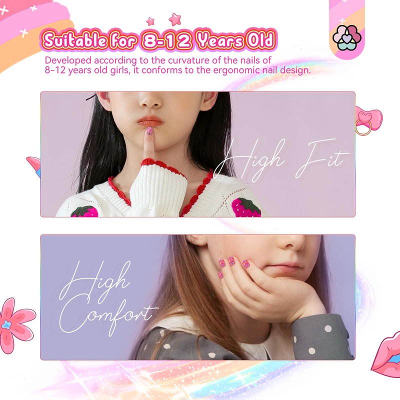 - Stable Wearing, Not Easily Fall or Peel Off: The kid press on nails is designed with excellent adherence, making them resistant to easy detachment or falling off. This reliable feature ensures that the nails stay securely in place for an extended period, offering lasting wear without the risk of premature detachment