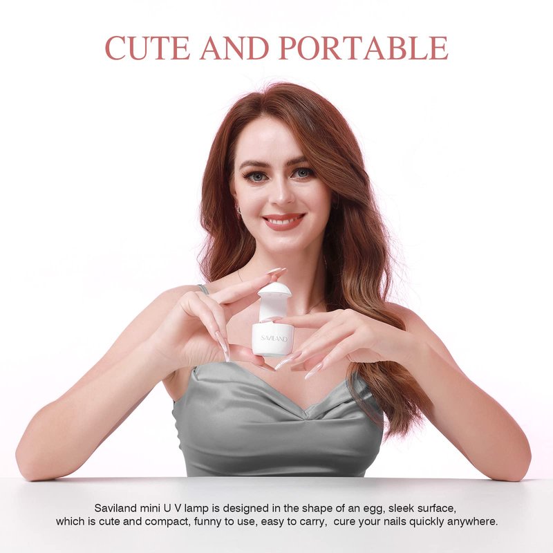 - 💅[PORTABLE & CUTE APPEARANCE]- Saviland mini nail lamp is designed in the shape of an egg, sleek surface, which is cute and small, funny to use. Compact design is portable and very easy to carry, allows you to take it with you, make it easy to use, and cure your nails quickly anywhere. Suitable for nail salon, DIY nail art at home, prom, parties, or other occasions.