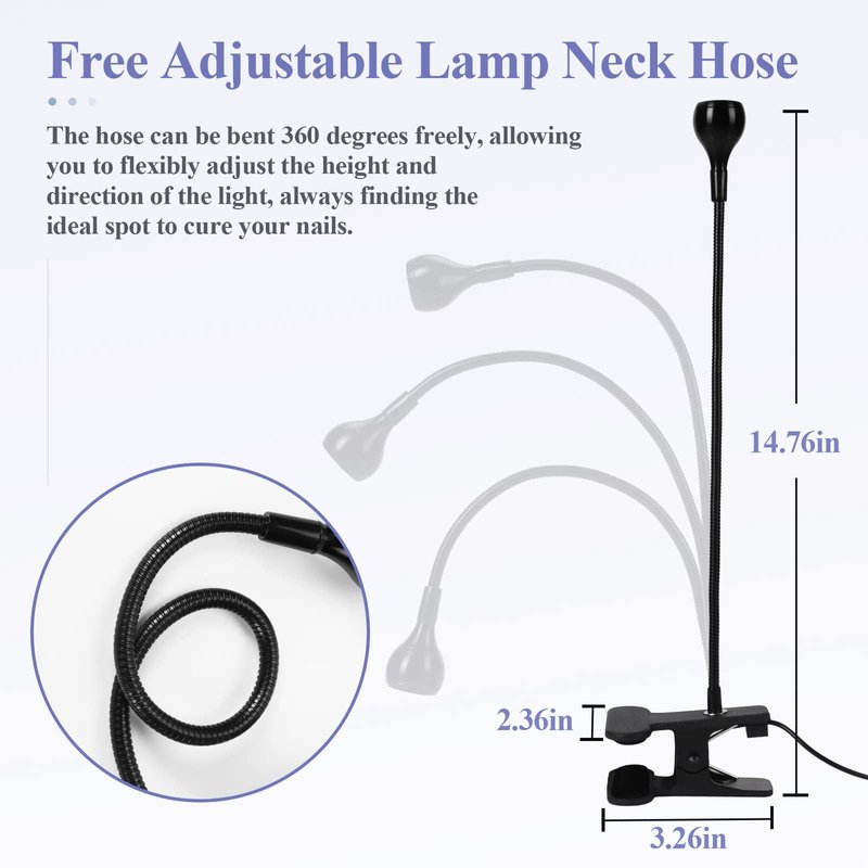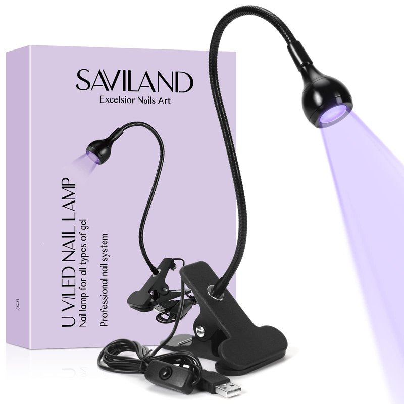 - Flexible Led Light for Nails: Saviland mini nail lamp has a flexible design and a sturdy clip. You have the flexibility to adjust the angle and height you need and don't have to worry about awkward angles since you can clamp it directly to your desk or wherever you find most convenient. Solve the difficulty of flash cure lamp, and adjust the use angle at will. The mini gel nail lamp is convenient to carry and travel. Perfect for any nail art design