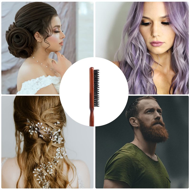 - Product Application: Our boar bristle teasing hair brush is suitable for makeup styling, men's hair, men's beard styling, combing hair, bridal hair styling, daily care hair comb,etc. Small and light, easy to carry out