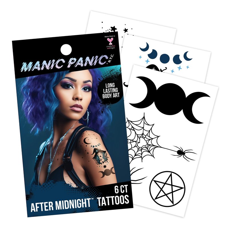 Savvi - 36 Manic Panic: After Midnight Temporary Tattoos: Skin-Safe Ink, Great for Parties and Everyday Wear, Gifts for Teens and Adults, Made in the USA [6 sheets, 36 count]