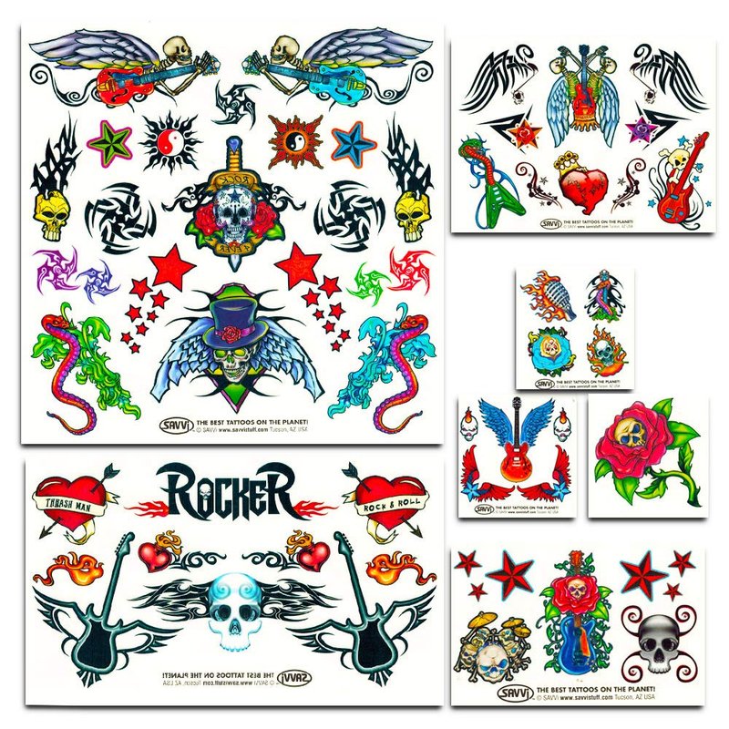- Savvi temporary tattoos party pack - 3 full-sized bags of classic temporary tattoo designs.