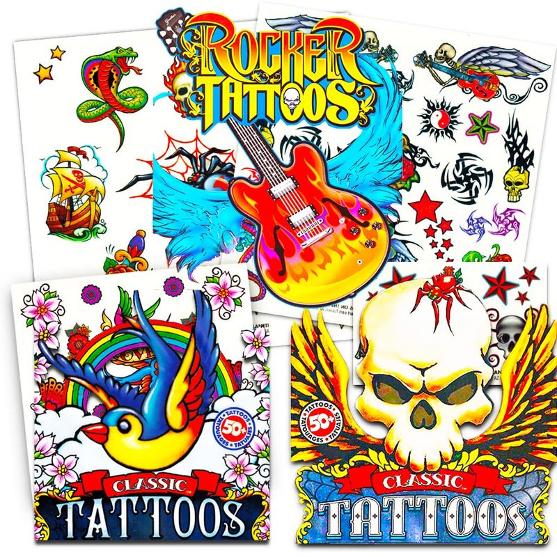 - Includes: 50 rocker temporary tattoos; 50 American traditional temporary tattoos; 50 classic temporary tattoos.