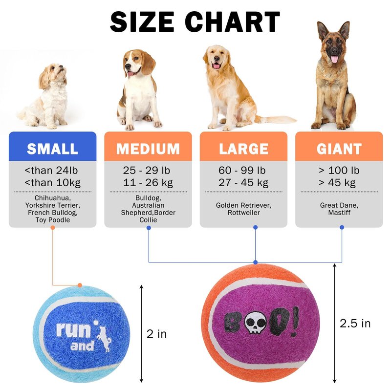 - SAFE FOR YOUR PUPPY: Tennis balls with a soft but durable felt layer on the outside and a natural rubber layer on the inside of our dog take balls are ideal for outdoor use and are safe for your puppy's teeth. These mini tennis balls are 2.5 inches in diameter and are designed for small, medium-sized dogs, making them a great choice for a dog Halloween gift.