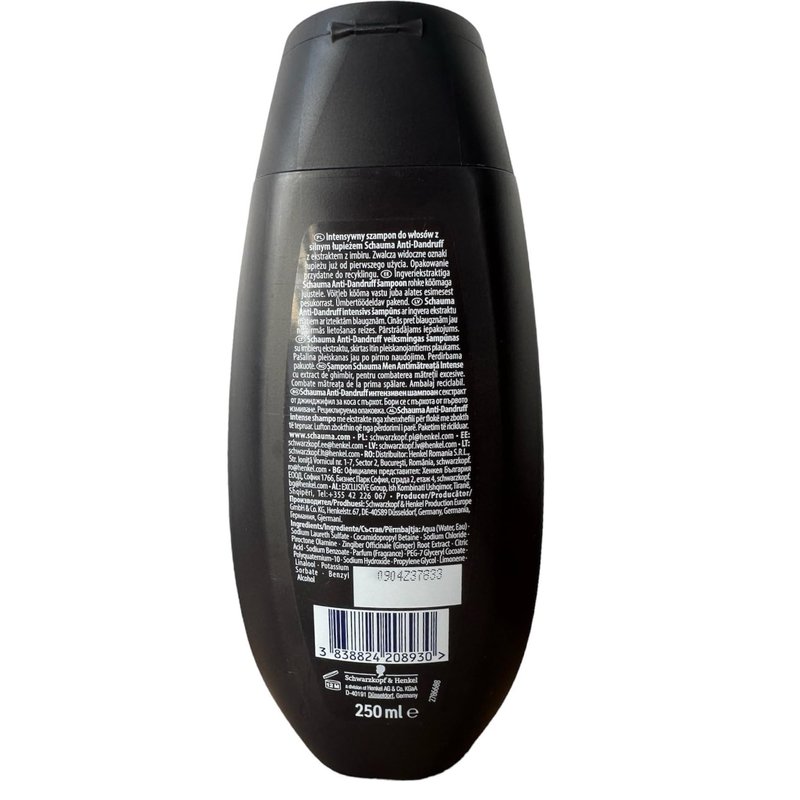 Anti-Dandruff INTENSIVE SHAMPOO Schauma Anti-Dandruff Intensive with even more Zinc Pyrithione, effectively fights even the strongest dandruff as of the 1st application. Hairtype: Against excessive dandruff, for daily hair wash Relieves from dandruff and prevents its reappearance for up to 6 weeks*. Counters itching and tensed scalp. For healthy hair without dandruff. *With regular application over 6 weeks.