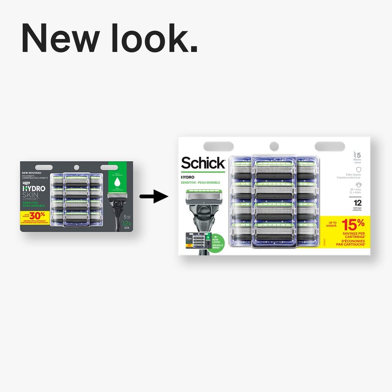Schick Hydro Sense Sensitive Mens Razor Blade Refill With Skin Guards, Includes 12 Razor Blades Refills