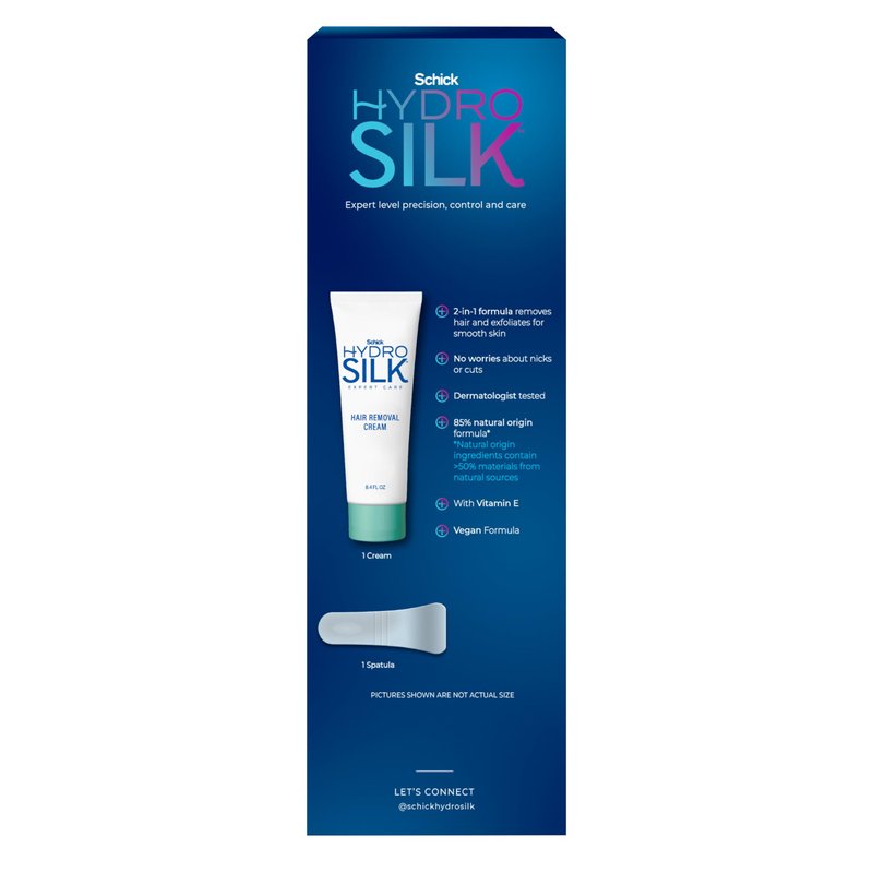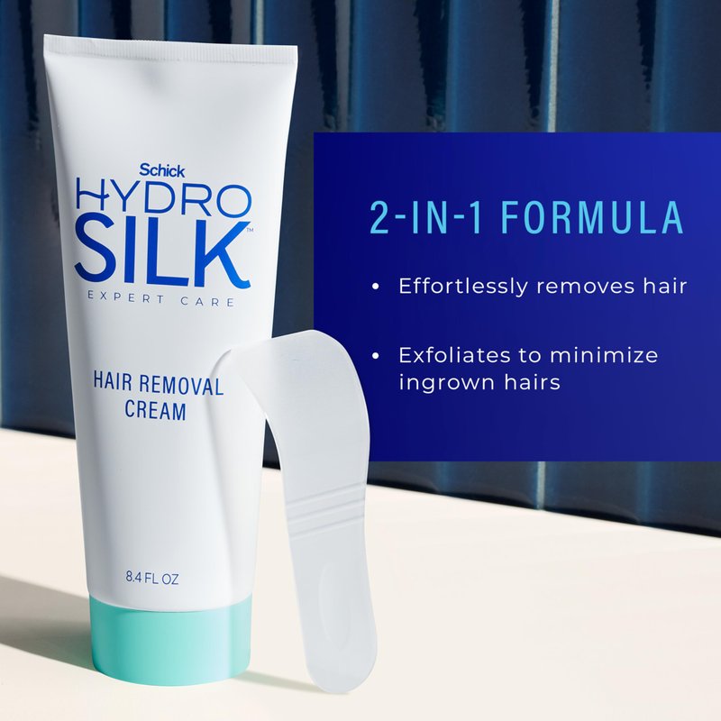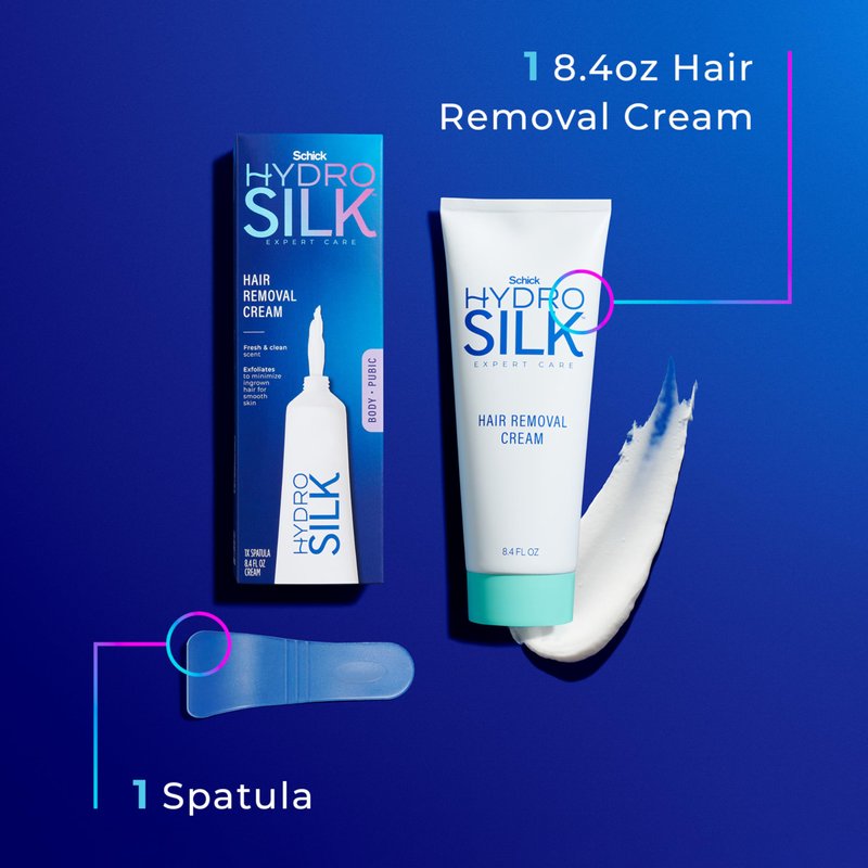 - Schick Hydro Silk 2-in-1 Hair Removal Cream Kit includes 8.4oz hair removal cream + 1 spatula for easy application and removal.