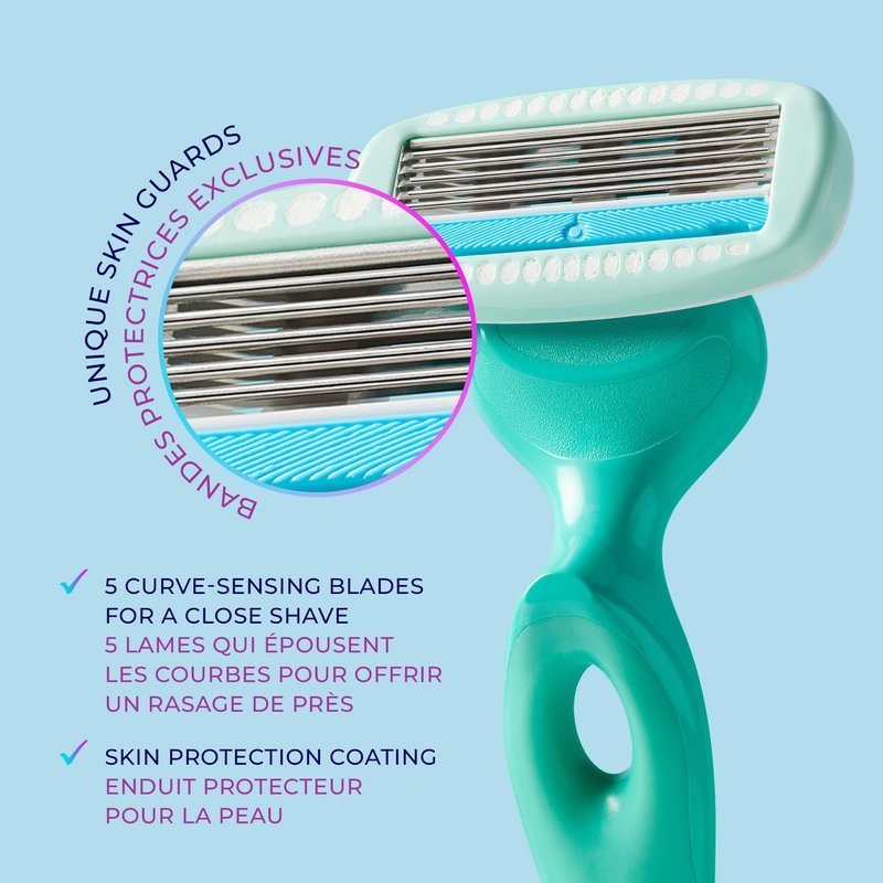 - CURVE-FOLLOWING DESIGN – 5 Curve-Sensing blades hug your natural curves and access hard-to-reach areas, ideal for shaving different areas of your body.