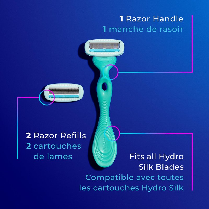- INCLUDES – These 5-blade razors for women include 2 razor refills and our handle fits any Hydro Silk women’s razor refill.