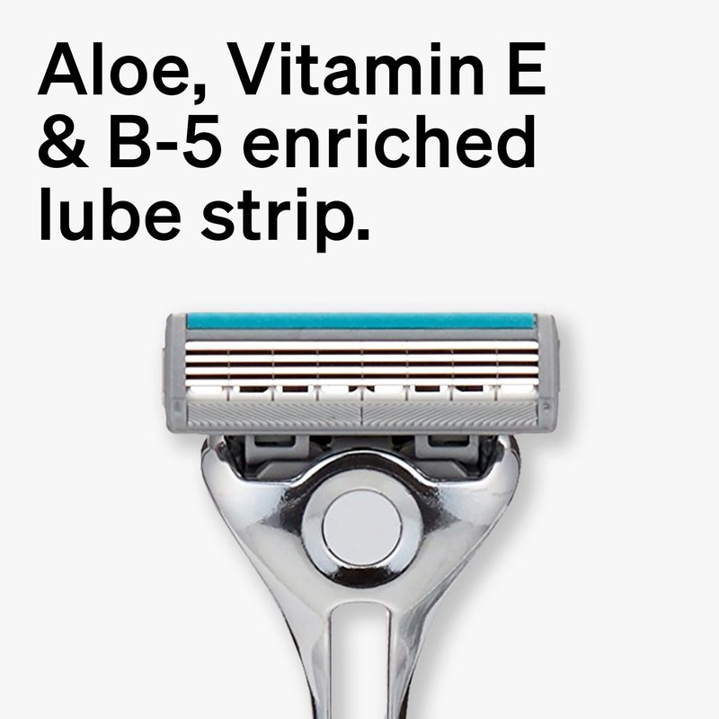 - Prioritizing protection – Glides over your face with an Aloe, Vitamin E and B-5-enriched lubricating strip.