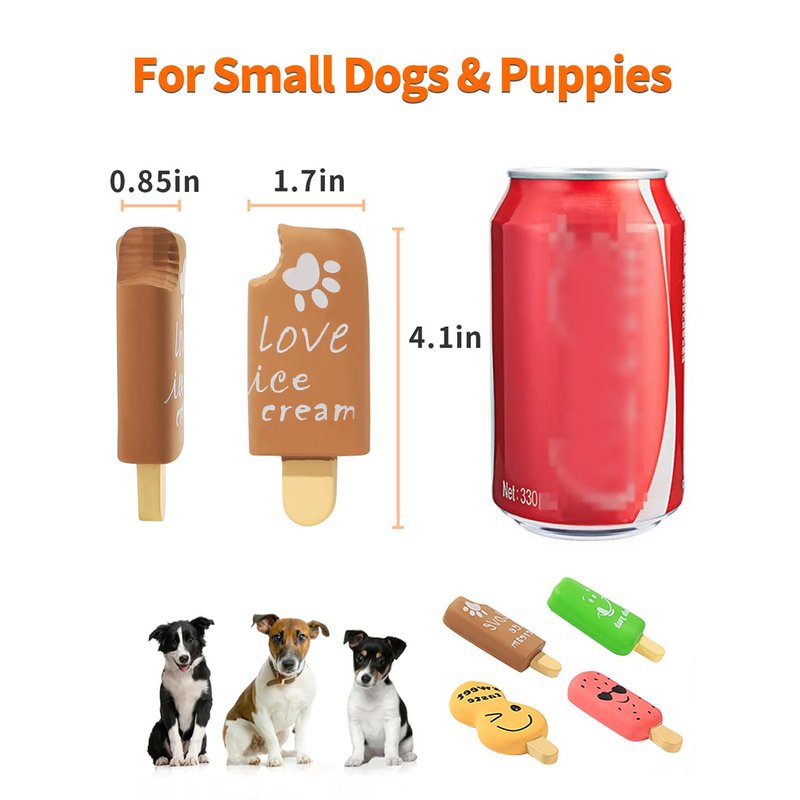 - [Suitable for Small Dogs & Puppies] The ice cream toy is 4.1” x 1.7” x 0.85”, designed for small dogs of all breeds.