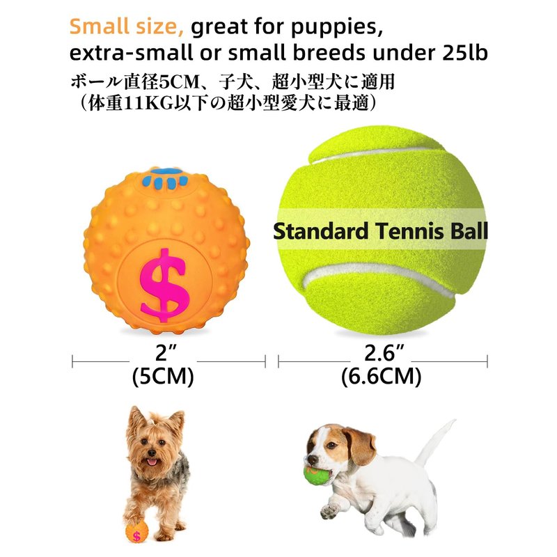 - 2” Mini Balls for Small Breeds: The tiny colorful balls are about 2 inches in diameter (much smaller than a tennis ball), perfect to fit in puppy’s mouth, ideal for extra small & small breeds such as Chihuahua, Yorkie, Pomeranian, Maltese, Mini Poodle and Shih Tzu.