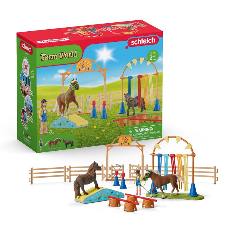 Schleich Farm World Pony Agility Training Set with Horse, Trainer, and Accessories Playset - 41-Piece Pony, Trainer, and Accessories Toy Set, Gift for Boys, Girls, and Toddlers Ages 3+